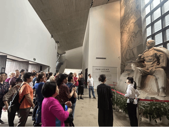在田汉纪念馆与故居参观环节,党员们通过泛黄的手稿、历史照片、复原场景等珍贵史料,深入了解 “国歌之父” 田汉先生的艺术成就与革命历程。展柜中《义勇军进行曲》的歌词手稿、田汉投身抗日救亡运动的文献资料,生动再现了他以文艺为武器、为民族解放事业奋斗的初心。老党员们驻足良久,深切感悟革命先辈 “把文艺当作革命武器” 的家国情怀,纷纷表示要传承红色精神,让初心永不褪色。